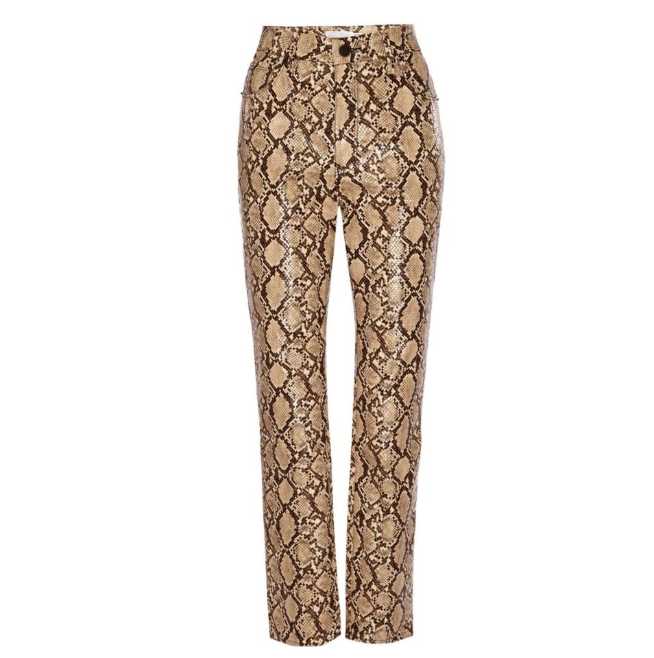 Pantalon en cuir véritable sur mesure, de haute qualité, évasé, respirant, en peau de serpent, en peau d'agneau, taille mi-haute, coupe droite