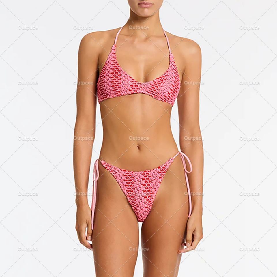 Bikini de plage personnalisé en crochet brodé à la main, maillot de bain de luxe, bikini en tricot à bretelles fines, ensemble 2 pièces pour femmes
