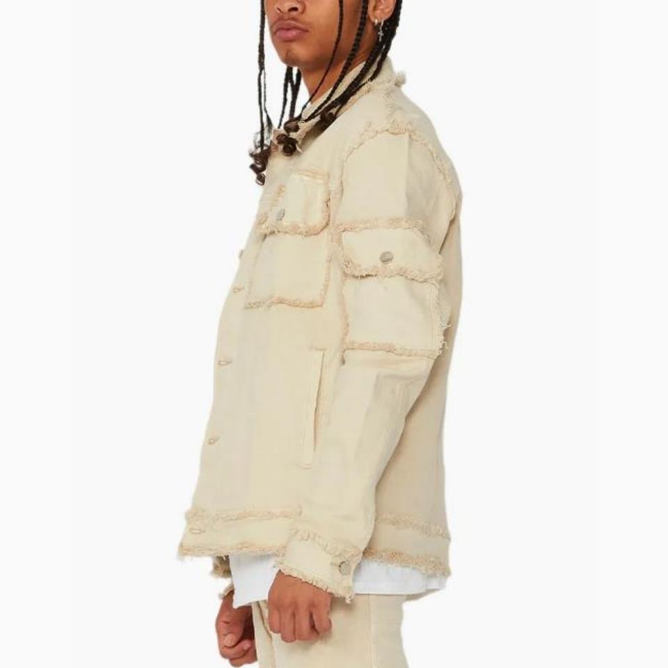 Veste en jean beige déchirée à la mode, ample, style streetwear, automne, à multiples poches, pour homme, fabricant de vestes