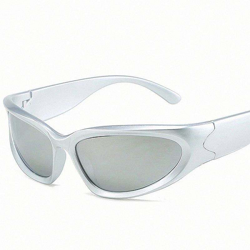 Lunettes de soleil personnalisées en argent miroir œil de chat pour hommes, style punk, protection UV400, pour sports de plein air et conduite, également adaptées aux femmes