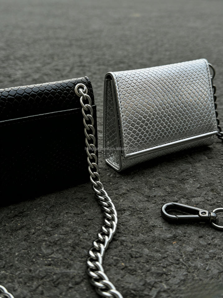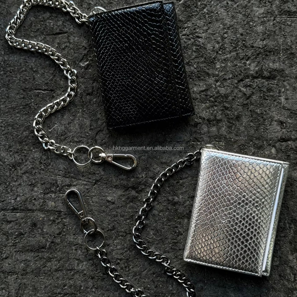 Portefeuille en cuir gaufré serpent personnalisé, petit porte-cartes, style motard punk pour hommes et femmes