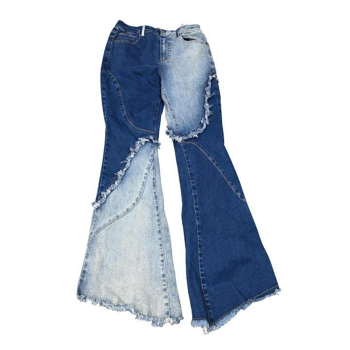 Jeans pour femmes évasés en denim avec nœud respirant de couleur unie à la mode personnalisée pantalon lavé à patchs