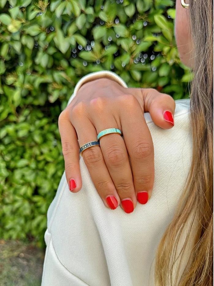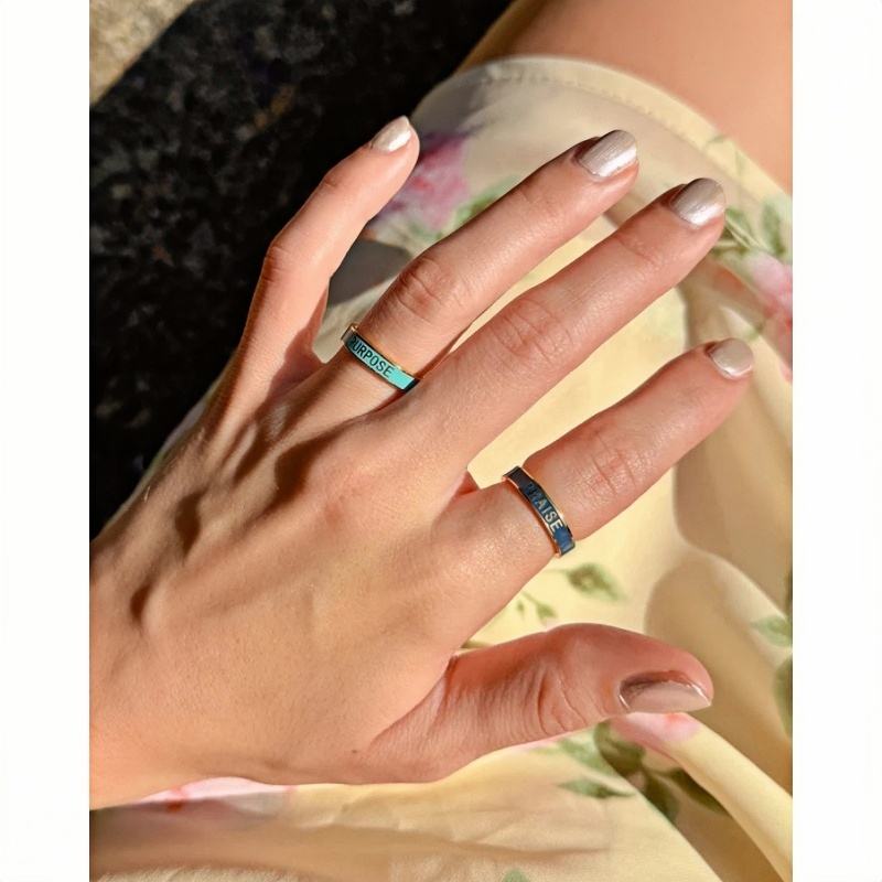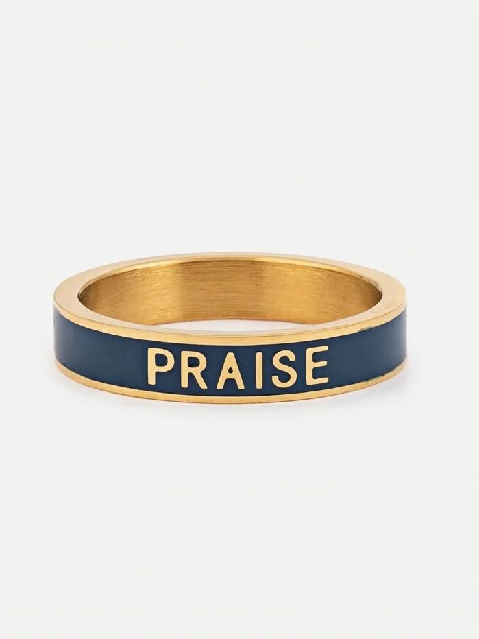 Bague de louange gravée en émail marine en acier inoxydable de mode personnalisée