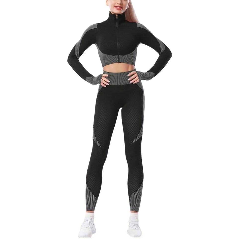 Ensemble de yoga sportif sans couture à la mode personnalisé, ensemble de jogging deux pièces, ensemble de leggings, haut de sport à fermeture éclair, leggings de yoga pour femmes