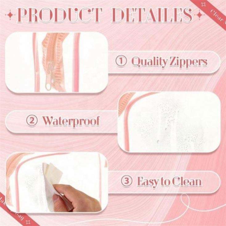 Trousse de Maquillage Imperméable Personnalisée et Tendance avec Fermeture Éclair en PVC Transparent et Motif Lettres pour Kit de Toilette de Voyage