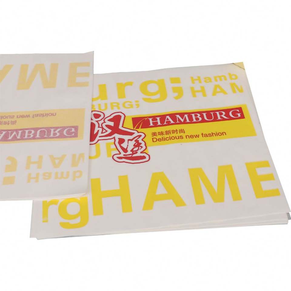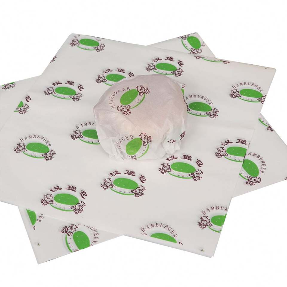 Emballage personnalisé pour hamburgers de restauration rapide, enduit d'un côté, qualité alimentaire, résistant à la graisse, non toxique, impression de logo écologique, sûr