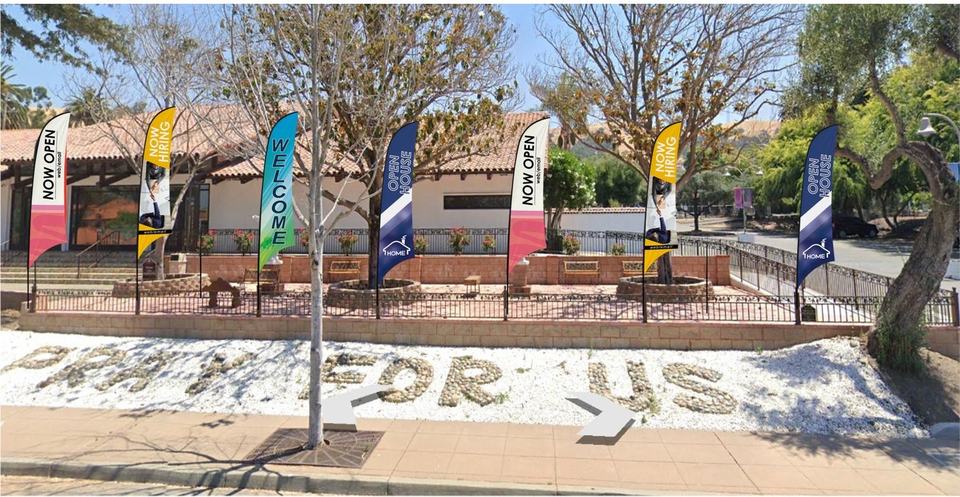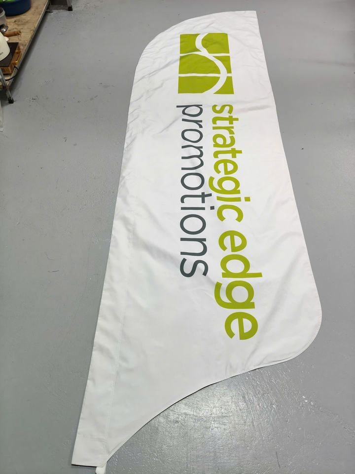 Drapeau publicitaire personnalisé avec mât, impression numérique recto/verso pour promotion de marque en extérieur