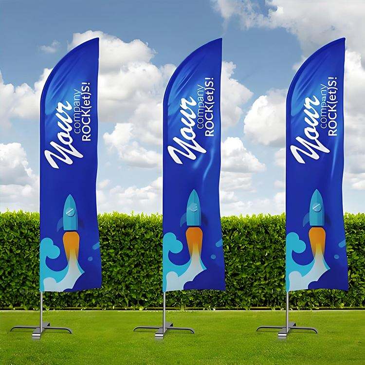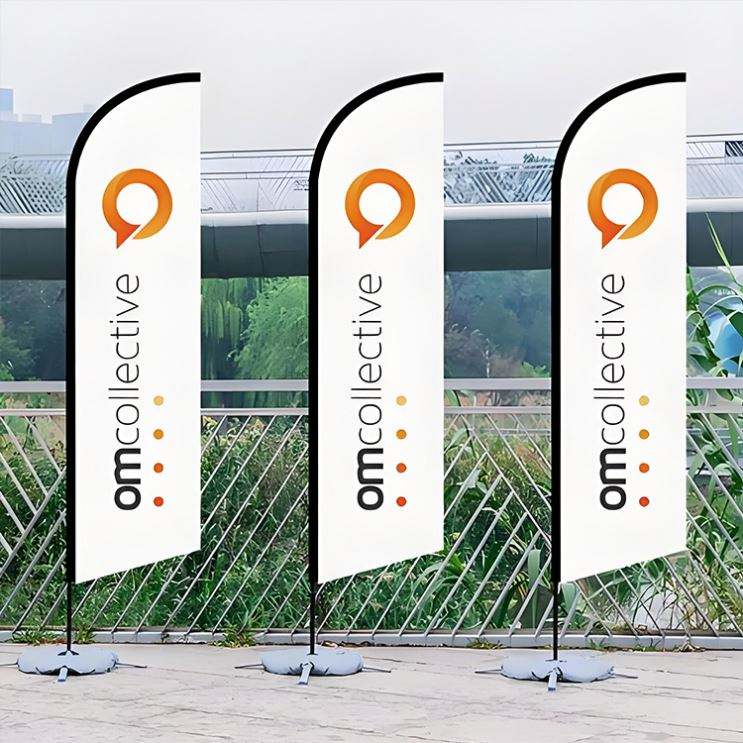 Base de mât de drapeau à plumes personnalisée, haute qualité, impression numérique double face, polyester tricoté, fibre de verre, écologique