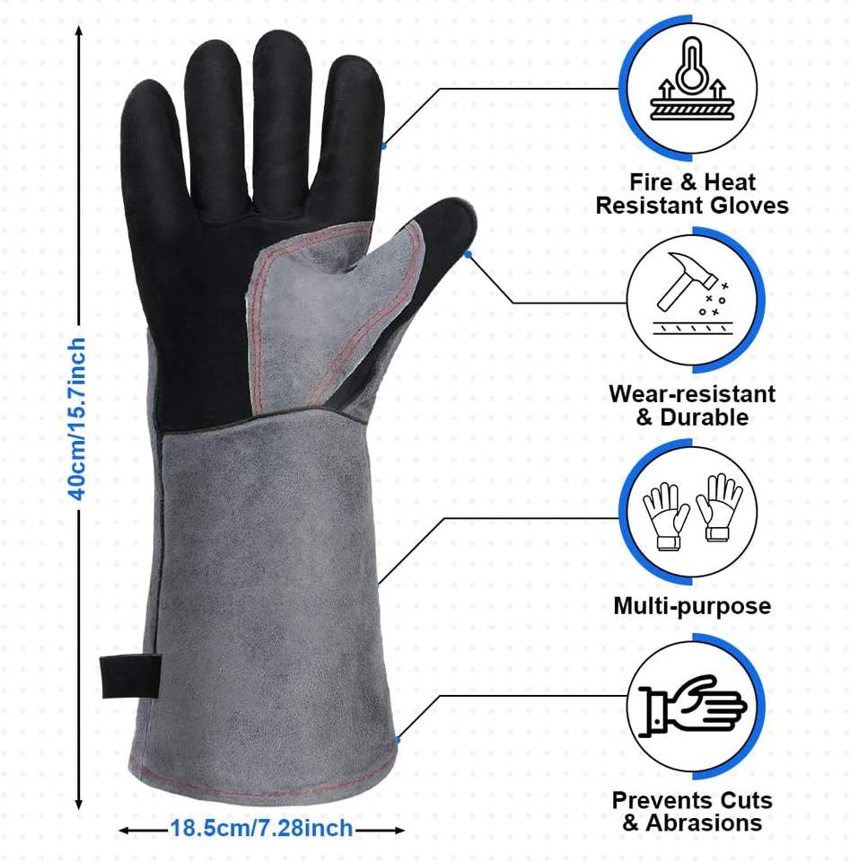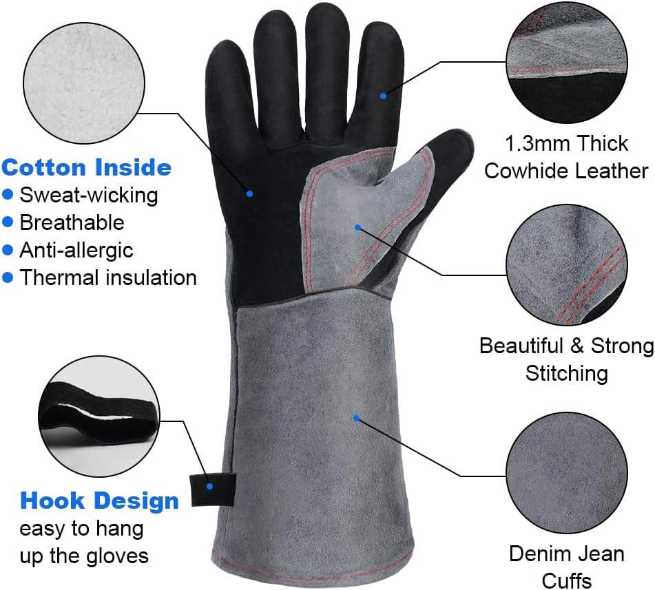 Gants de soudage en cuir de vachette à grain fin personnalisés, résistants, confortables, antidérapants, respirants, imperméables et anti-coupures