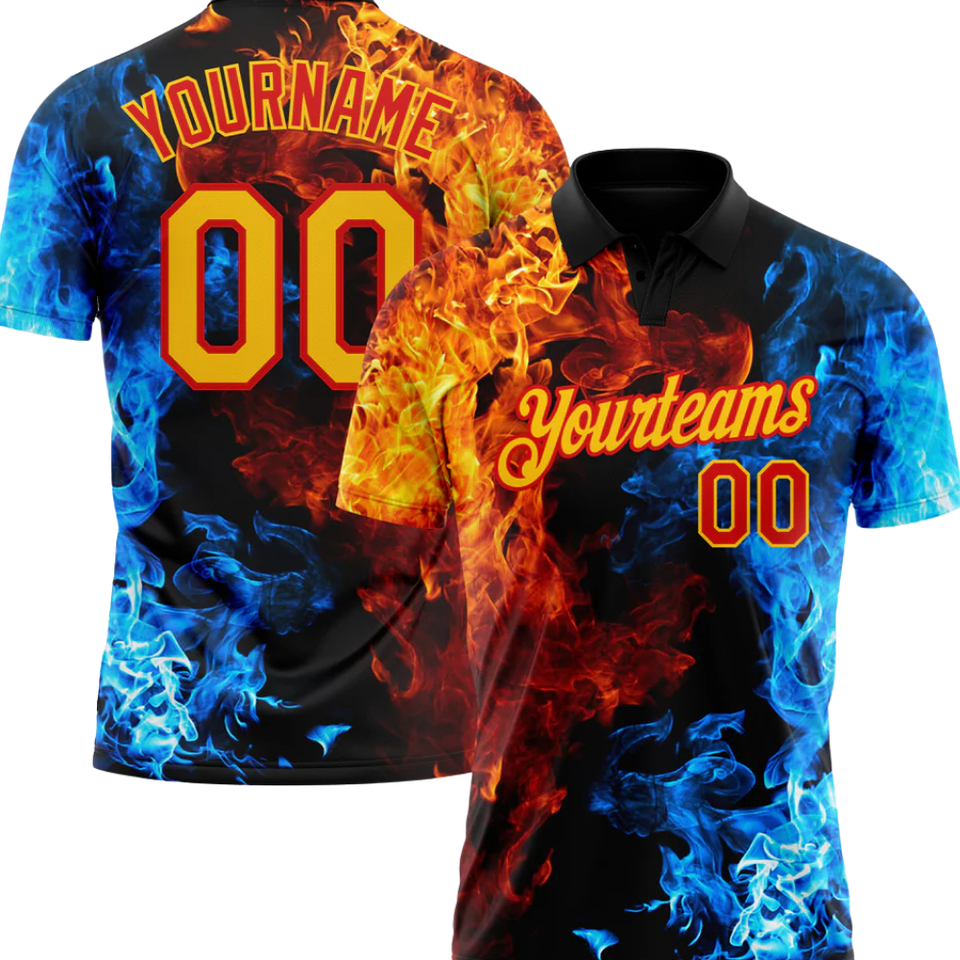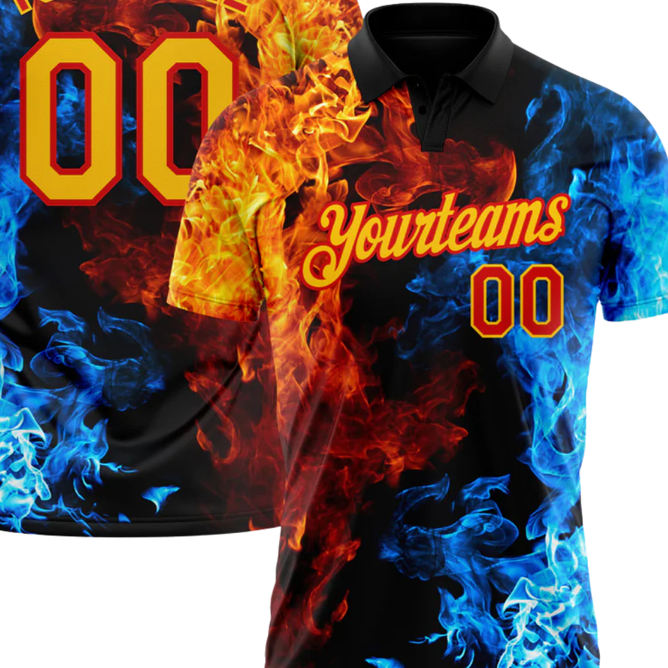 Polo personnalisé avec sublimation feu et glace, avec nom et numéro personnalisés, vêtements de sport personnalisés, maillots d'équipe personnalisés