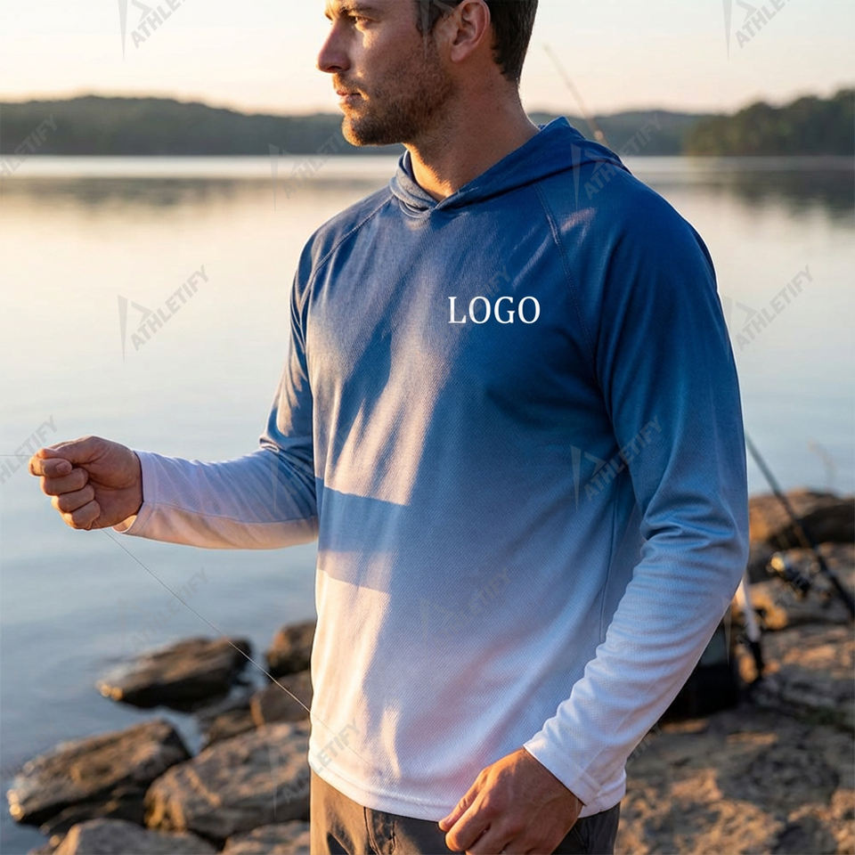 Sweat à capuche respirant UPF 50 personnalisé pour la pêche, chemise de pêche à manches longues avec logo, léger, pour les pêcheurs en plein air