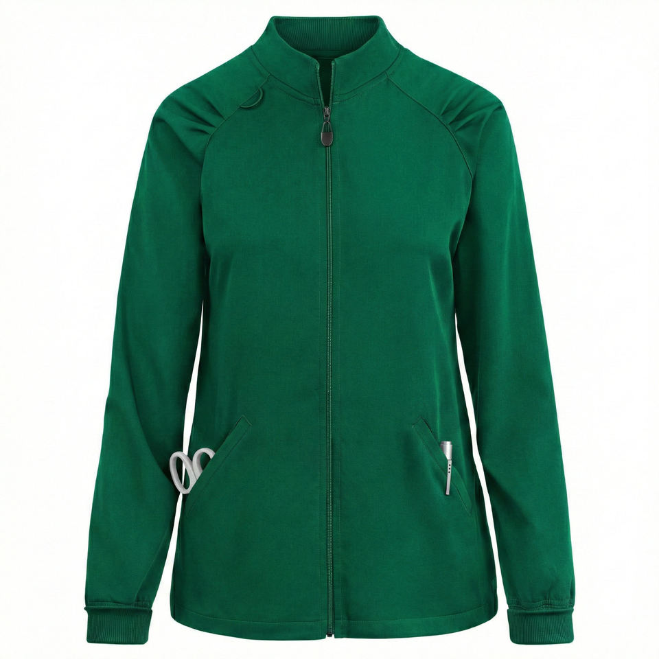 Blouse médicale sur mesure à manches longues avec poignets côtelés et fermeture éclair frontale, uniforme d'infirmière, boucle utilitaire, vente en gros de blouses médicales
