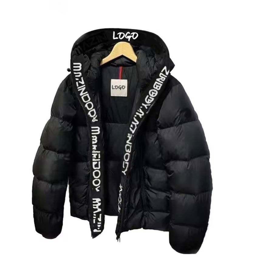 Blouson matelassé unisexe en toile enduite sur mesure avec col montant et logo frontal, nouveau design prêt-à-porter pour l'hiver, look adorable