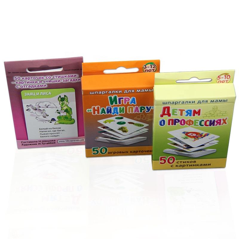 Flashcard éducatif imprimé personnalisé des deux côtés avec impression de boîte 52-56pcs par ensemble, 100/144/200 ensembles par carton, nous acceptons la conception personnalisée des deux côtés de la boîte de papier, et emballera selon votre besoin