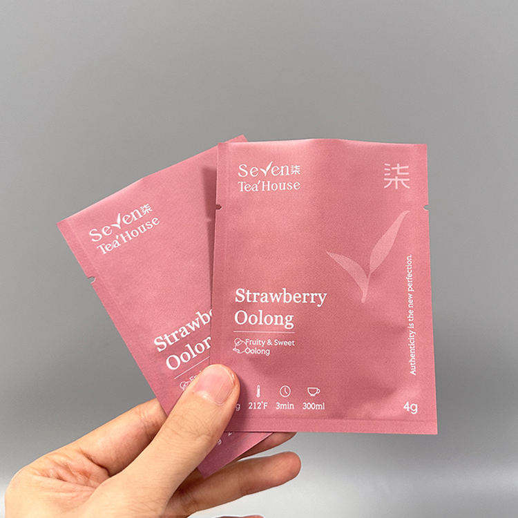 Pochette plate personnalisée pour solution d'emballage de thé | Matériau plastique laminé mat de petite taille | Encoche thermoscellable | Vietnam