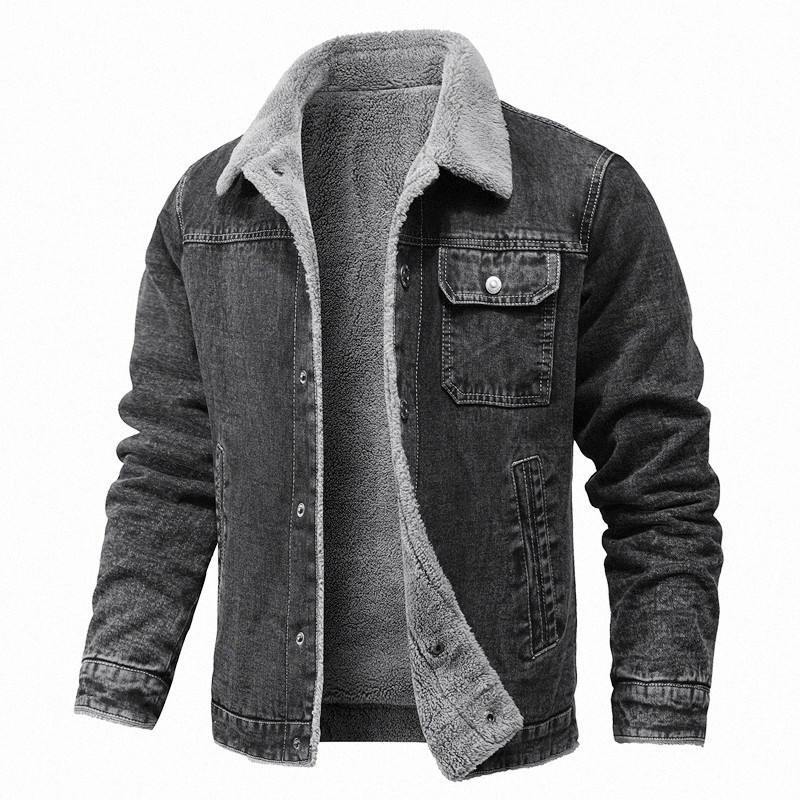 Veste en jean épaisse avec poches en polaire personnalisées pour hommes, vestes pour hommes