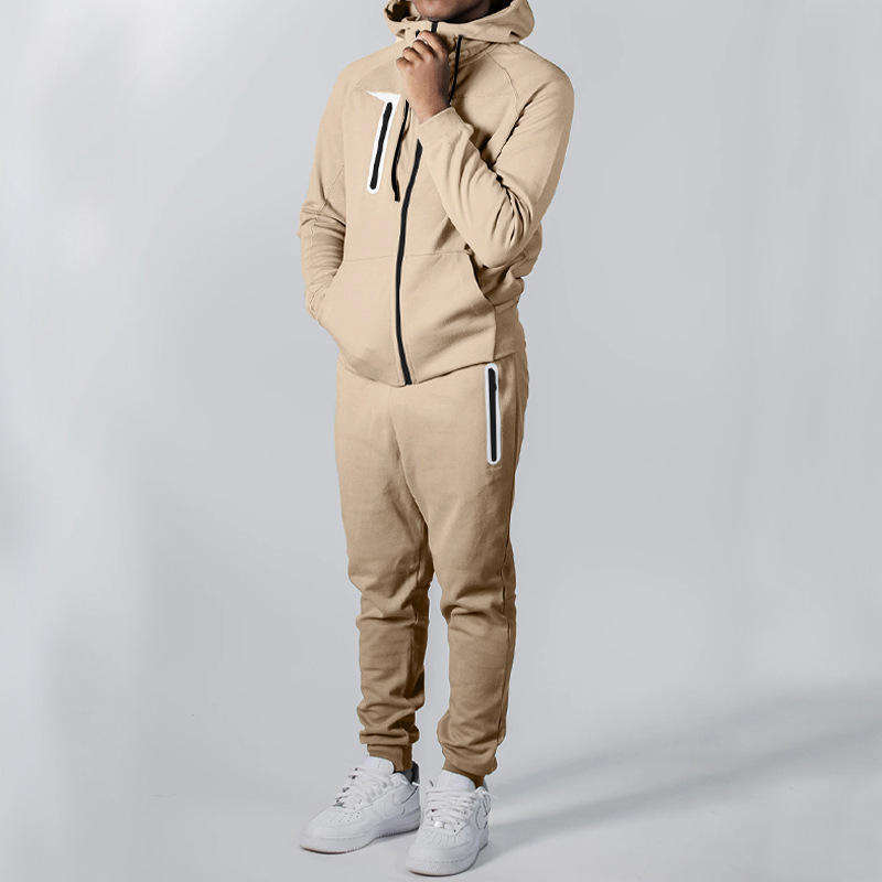 Ensemble pantalon de jogging et sweat à capuche avec logo personnalisé en molleton sérigraphié avec fermeture éclair complète survêtements pour hommes