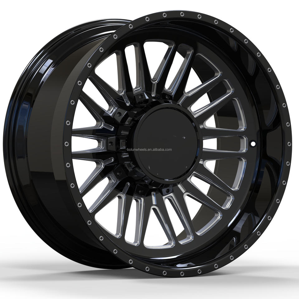 Jantes de camion forgées en aluminium 6061 T6, flottantes personnalisées, noires, fraisées, 24*12 PCD 6*135 ET-44 CB 87.1 pour FORD F150 F250 2022
