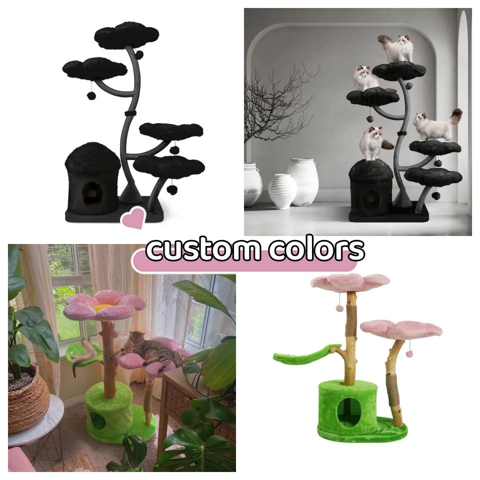 Arbre à chat floral personnalisé tour de maison en bois décoratif griffoir pour animaux de compagnie jouets d'arbre de noël chats fleur arbre à chat pour grand chaton