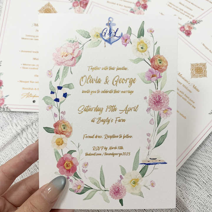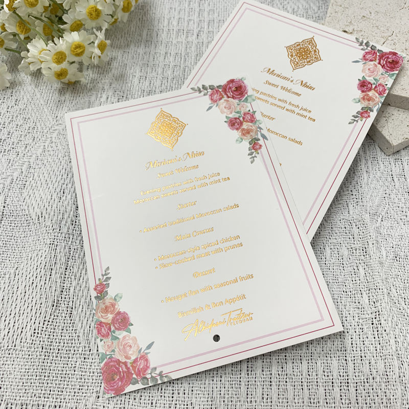 Impression florale personnalisée de cartes d'invitation de mariage, impression en relief à l'aveugle grand format, papier cartonné pour événements spéciaux