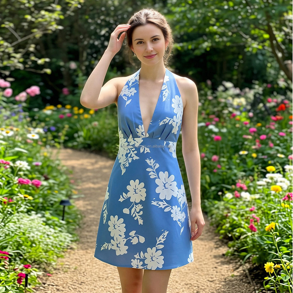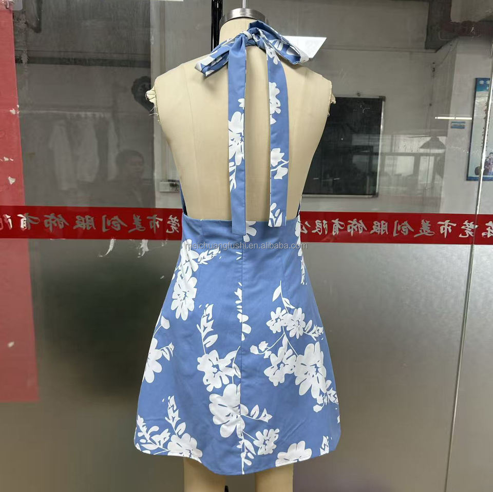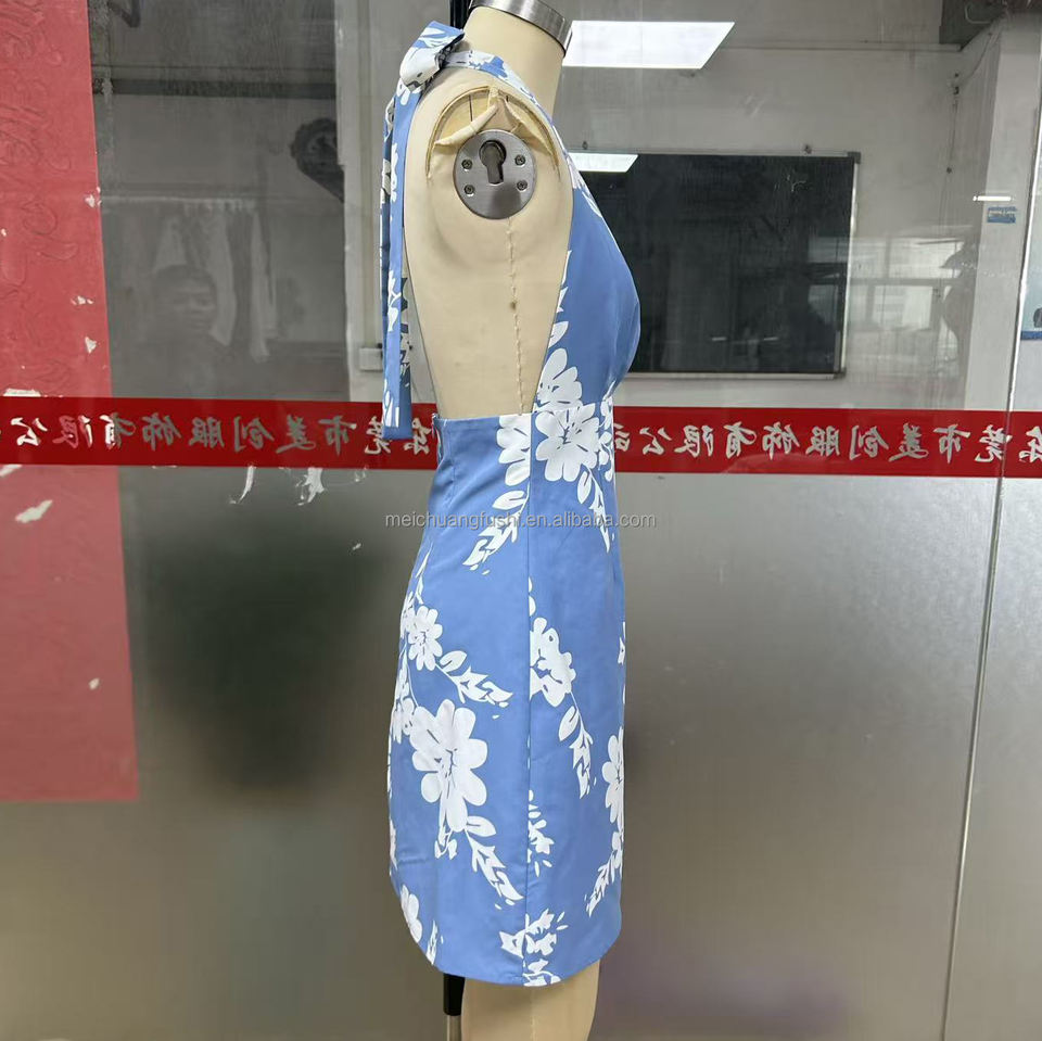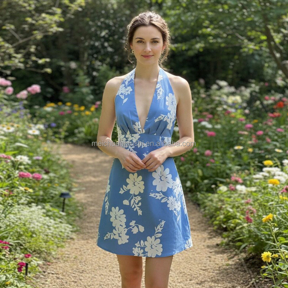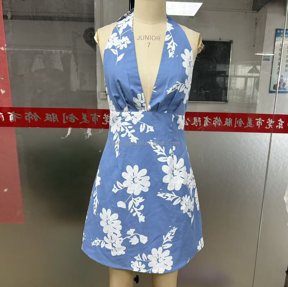 Robe mini à imprimé floral personnalisé pour femmes, robe dos nu à col en V profond, robes pour femmes