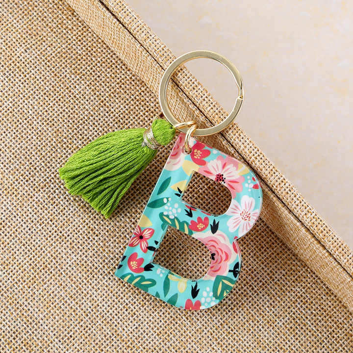 Porte-clés avec nom de l'alphabet imprimé de fleurs personnalisées, lettres de l'alphabet pour sacs