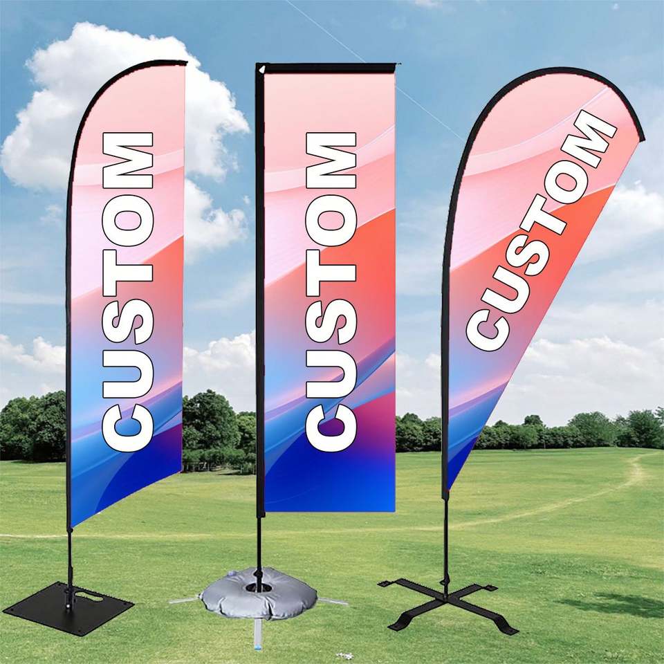 Drapeau publicitaire personnalisé pour événements extérieurs, imprimé par sublimation, logo, imperméable, plume de drapeau télescopique en polyester pour la plage