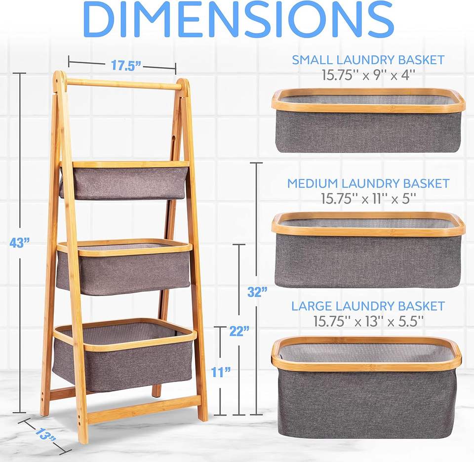 Panier à linge pliable en bambou personnalisé avec 3 paniers amovibles