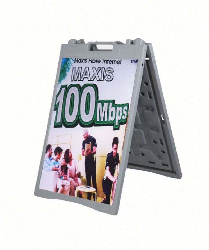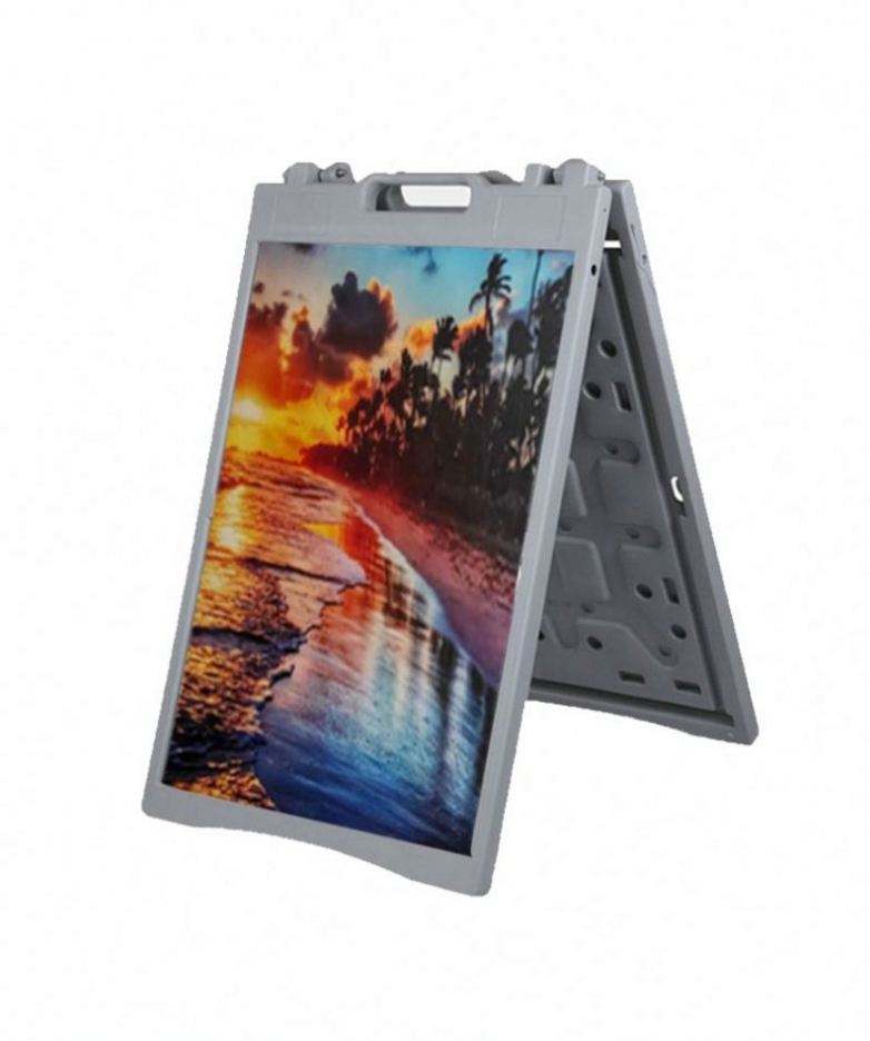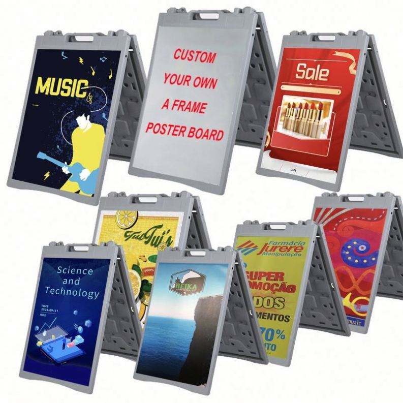 Panneau publicitaire moderne pliable et portable en plastique avec base à injection d'eau, type A-frame pour trottoir
