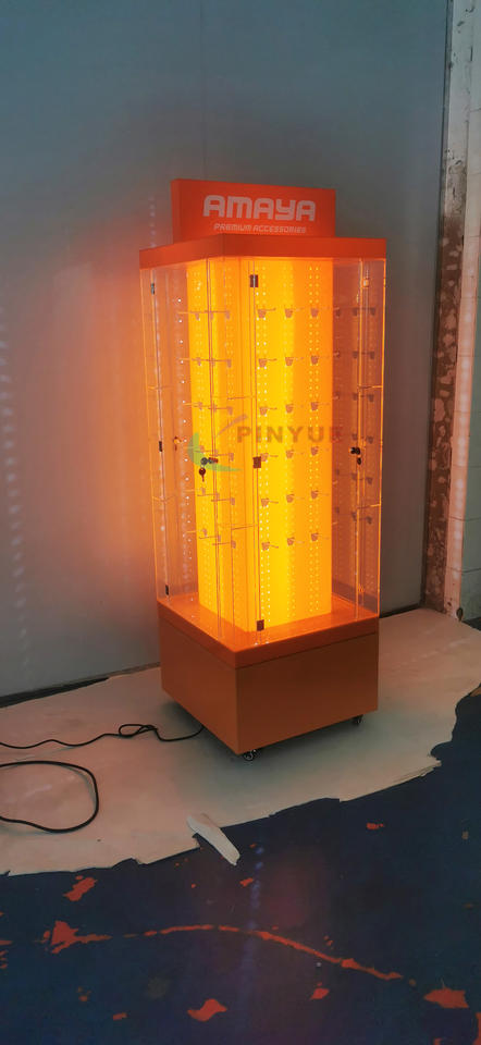 Support d'affichage rotatif en acrylique transparent avec base en bois pliable personnalisée, éclairage LED, pour les grands magasins et les supermarchés