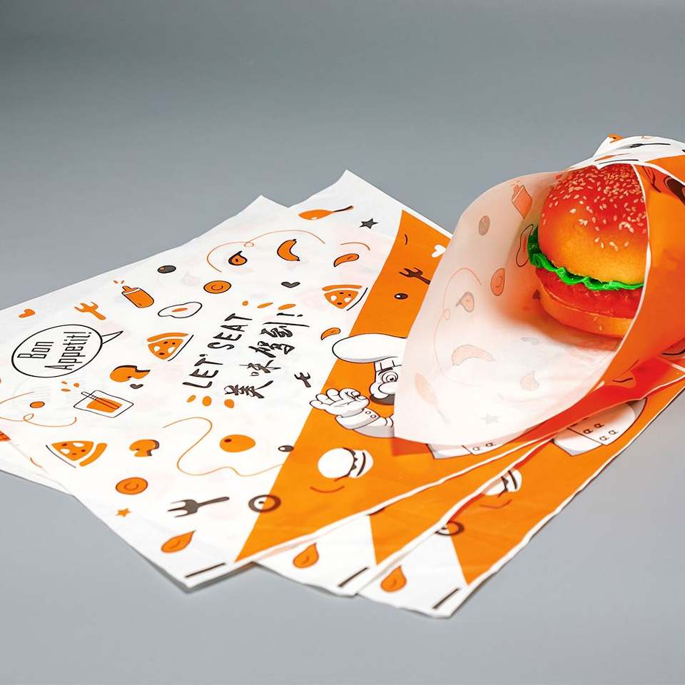 Papier d'emballage pour beurre, de qualité alimentaire, résistant à la graisse, biodégradable et imprimé pour sandwichs, pains, pizzas - Design gratuit !