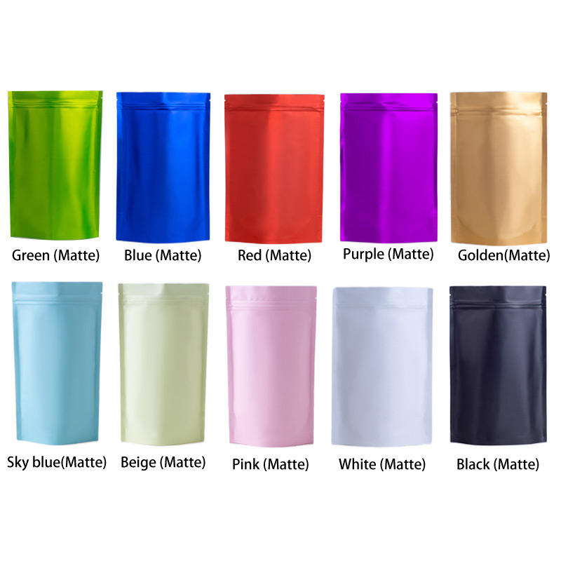 Emballage personnalisé en plastique PE de qualité alimentaire, sachet debout, fermeture éclair givrée, refermable, thermoscellage, découpe à l'emporte-pièce, pour l'industrie