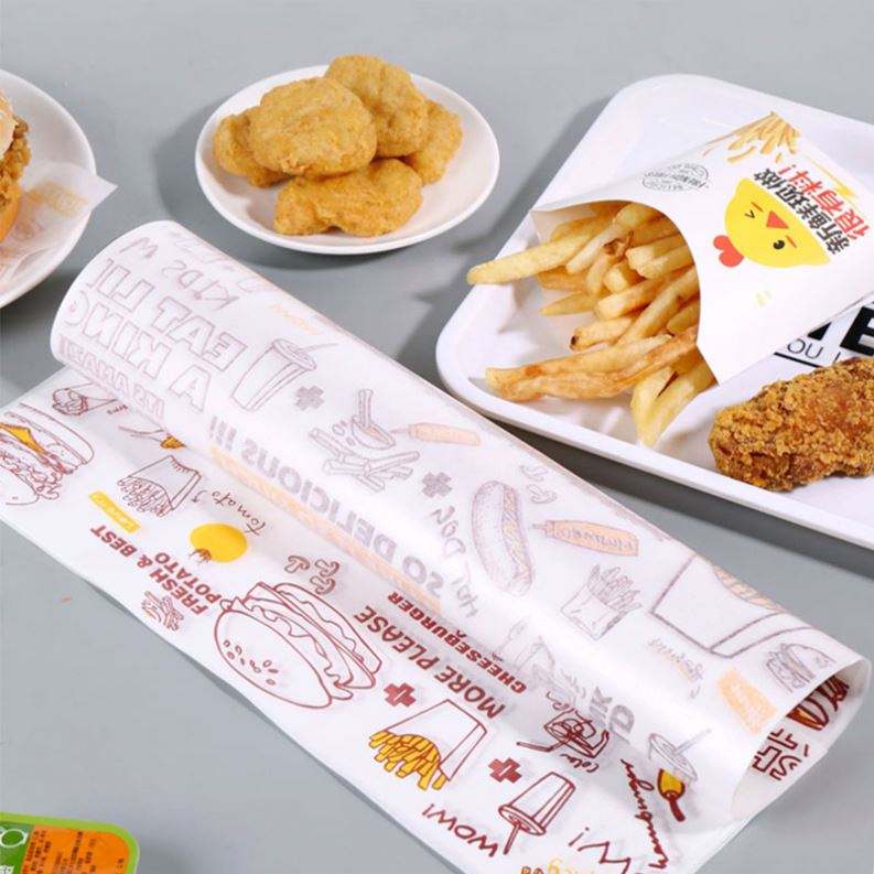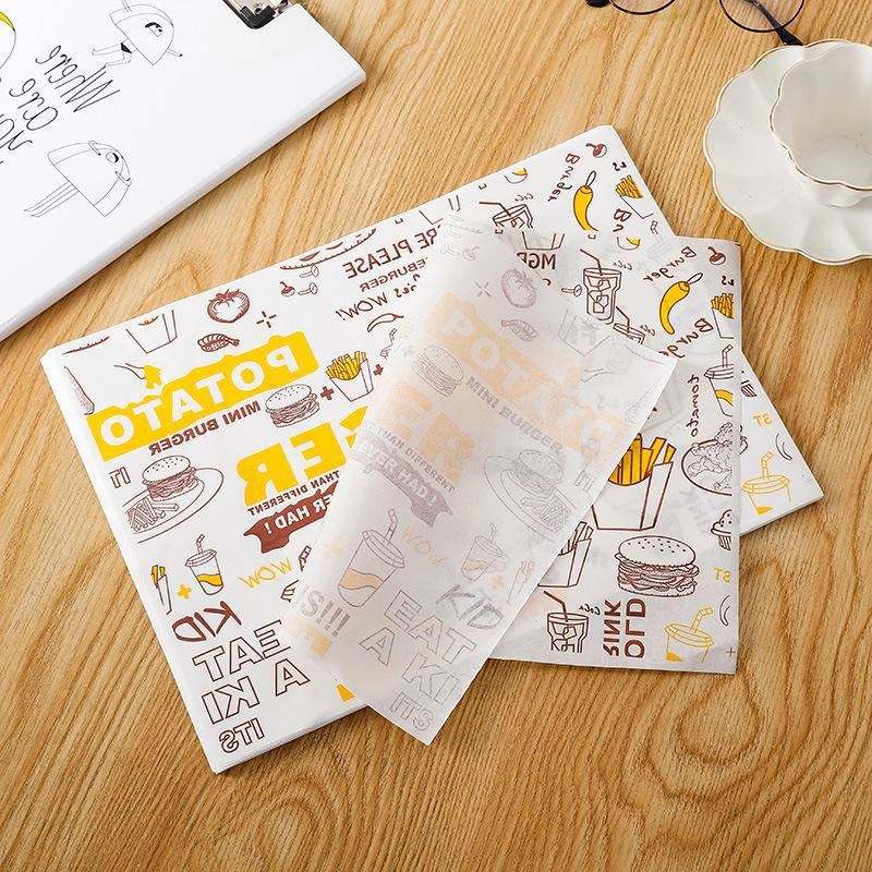 Papier d'emballage alimentaire personnalisé avec logo, papier alimentaire de qualité alimentaire, résistant à la graisse, pour hamburger, sandwich, feuille de papier avec logo imprimé, papier ciré