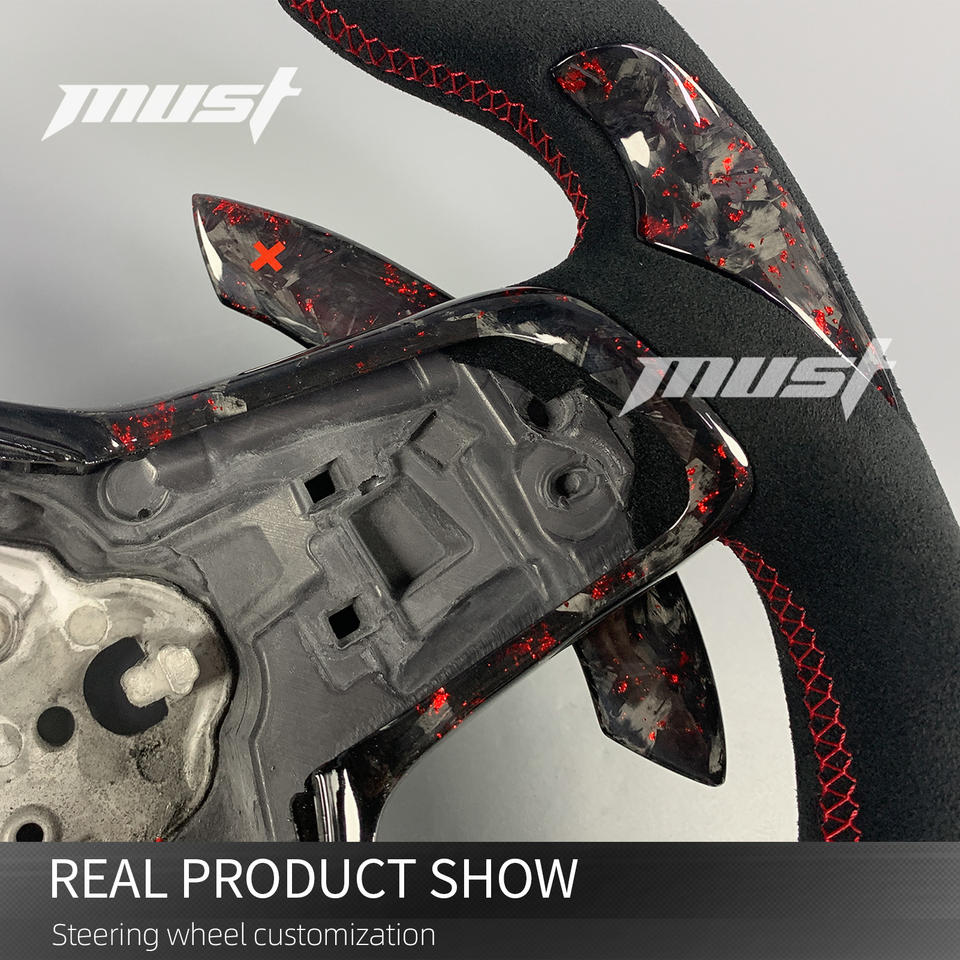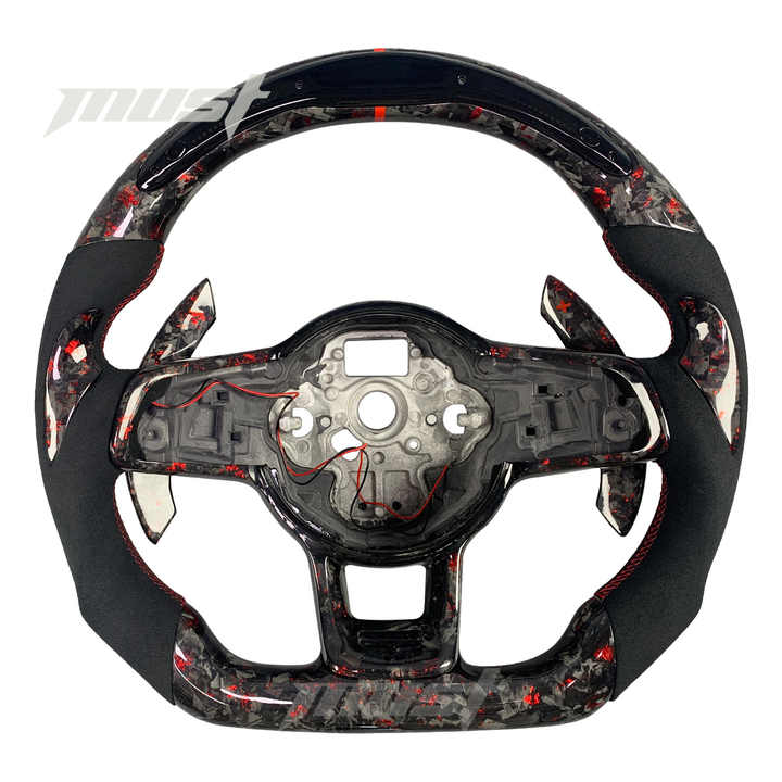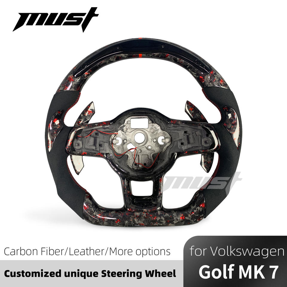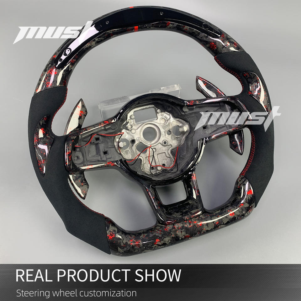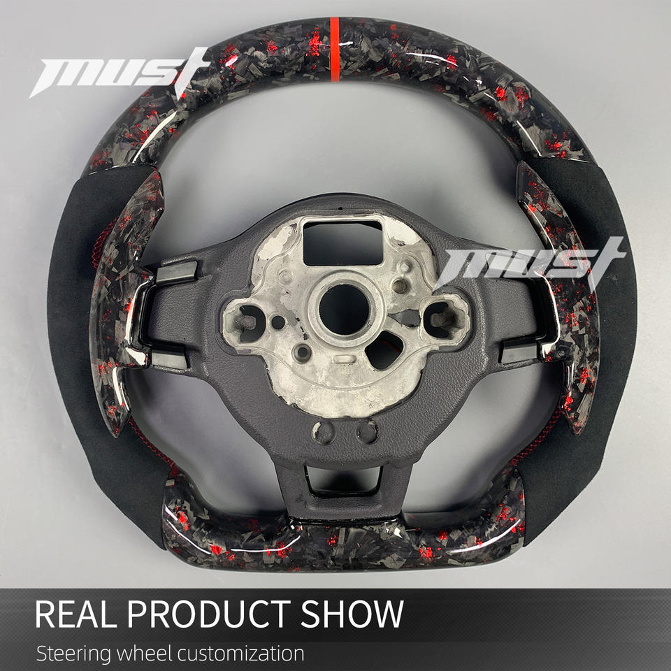 Volant en fibre de carbone forgé sur mesure pour Volkswagen MK7 GTI R Golf Tiguan Scirocco, design flocon rouge avec microfibre noire