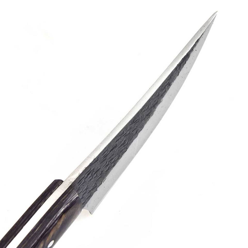 Couteau à Découper Personnalisé à Lame Fixe Forgée EDC, Manche en Bois Pakka, Étui en Cuir, OEM, Manche Plein, Couteau Utilitaire de Bushcraft et de Camping