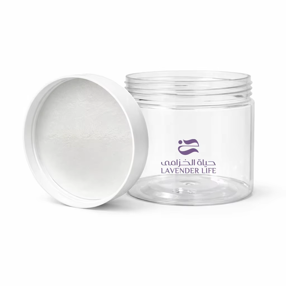 Gommage corporel sur mesure OEM en pot avec couvercle blanc, doublure en aluminium, étiquette, boîte et cellophane pour les fournitures de beauté