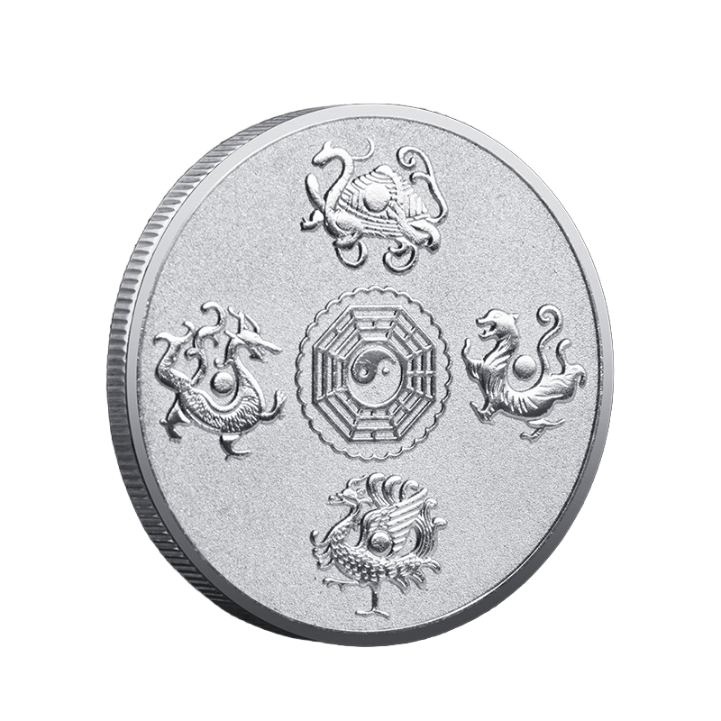 Pièce de monnaie personnalisée avec quatre créatures mythiques, Tai Chi Yin Yang, légendaires bêtes chinoises, médaillon, impression en relief 3D couleur