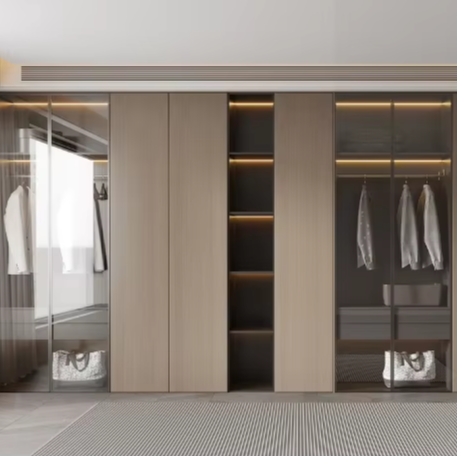 Custom Freestanding Modern Apartment Bedroom Dressing Room Closet High Gloss Glass Wooden DIY Furniture Wardrobe