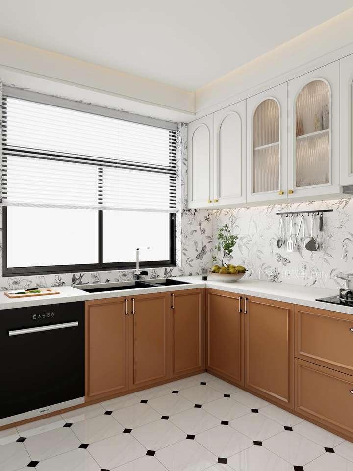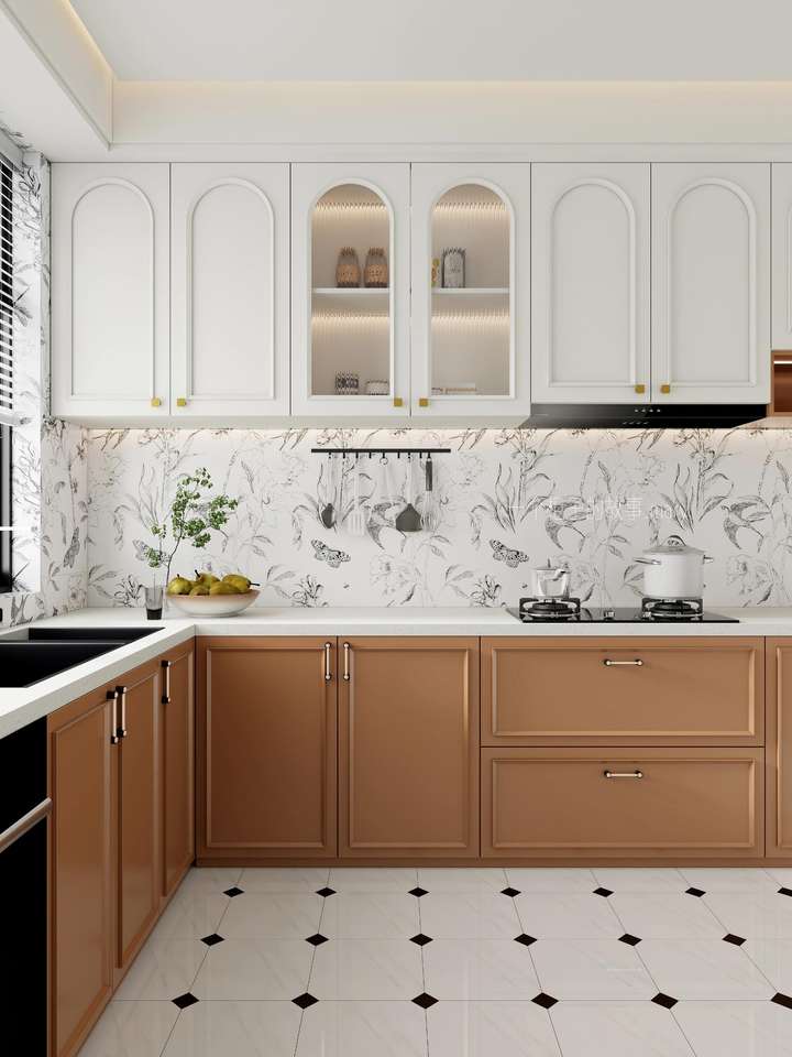Armoires de cuisine françaises personnalisées | Supérieur blanc + inférieur brun, espace électroménager intégré et esthétique intemporelle