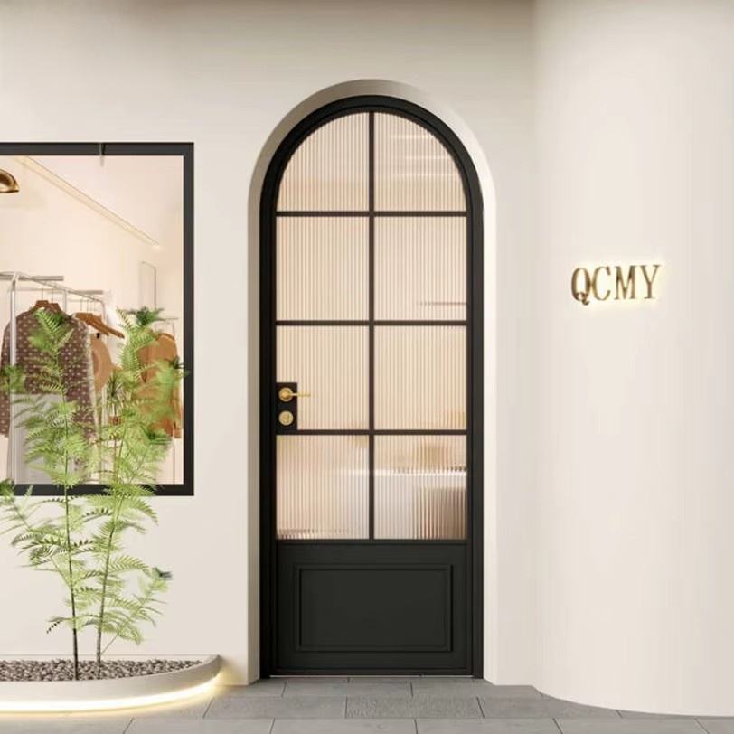 Porte de salle de bain rétro française sur mesure, ouverture plate et verre cintré, volet rétractable pour toilettes, magasin, porte de boîte