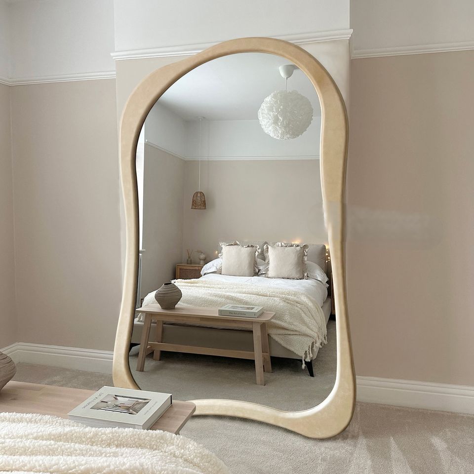 Grand miroir ondulé irrégulier de style français personnalisé | Miroir décoratif à cadre en bois pour chambre et hôtel