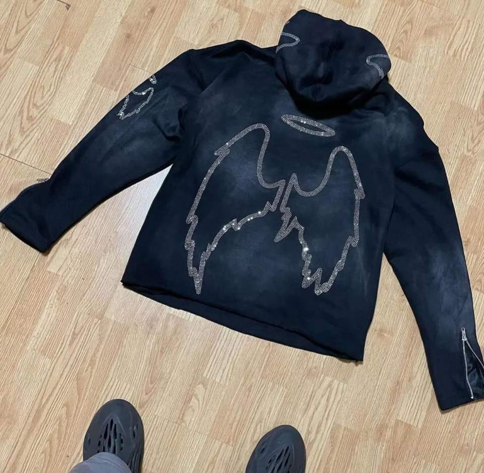 Sweats à capuche pour hommes personnalisés survêtements vintage 500 GSM coton épais éponge française délavé au soleil lavage à l'acide strass en détresse 3D en relief