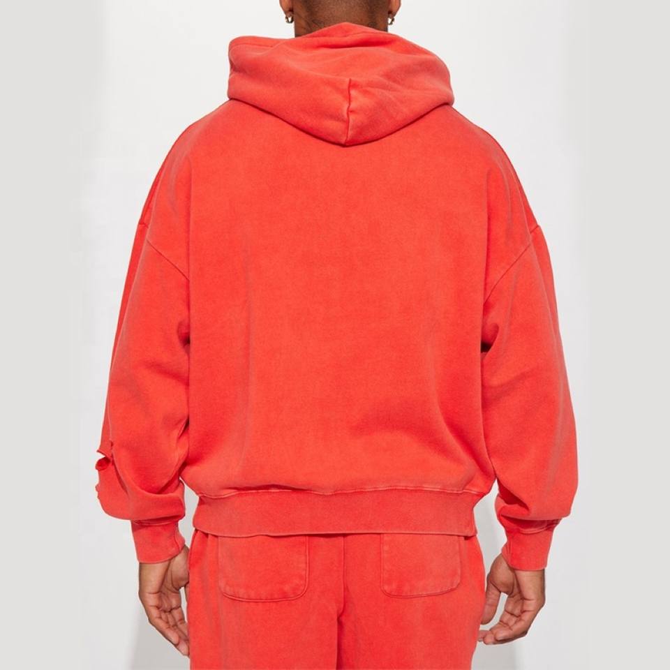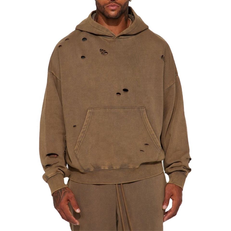 Sweat à capuche surdimensionné pour hommes en éponge française personnalisée 100% coton Streetwear déchiré Vintage en détresse sweats à capuche pour hommes