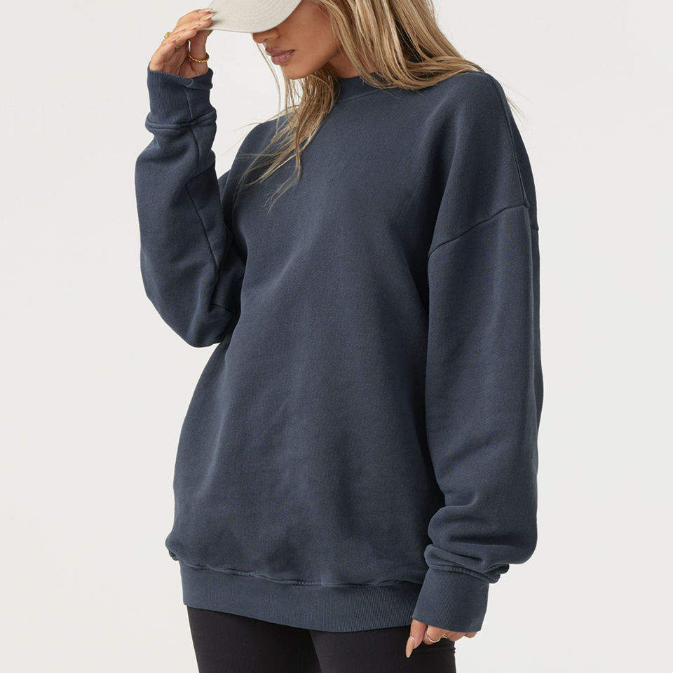 Sweat-shirt décontracté pour femme en molleton bouclette imprimé sur le devant, à épaules tombantes et col rond, 100 % coton, doublure hiver, anti-rétrécissement
