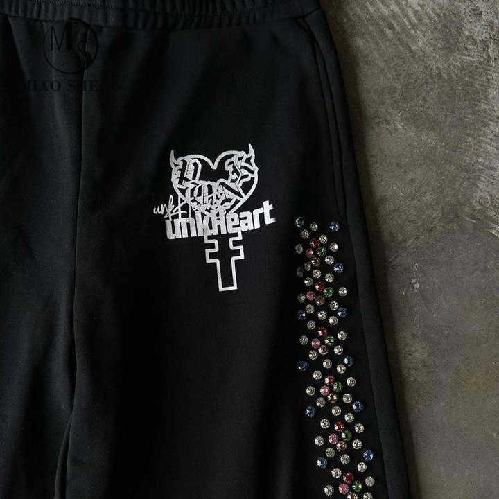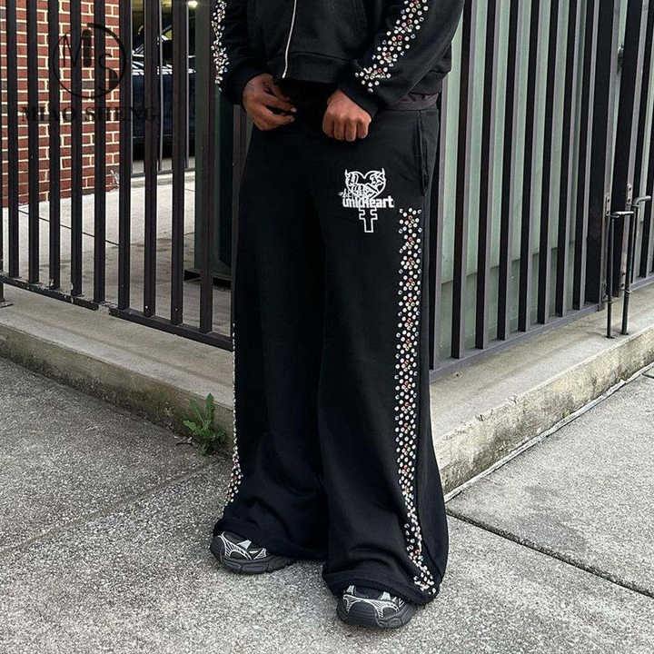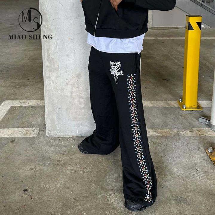 Pantalon éponge personnalisé Pantalon de survêtement pour homme Baggy délavé au soleil pour homme Pantalon de survêtement vintage en strass