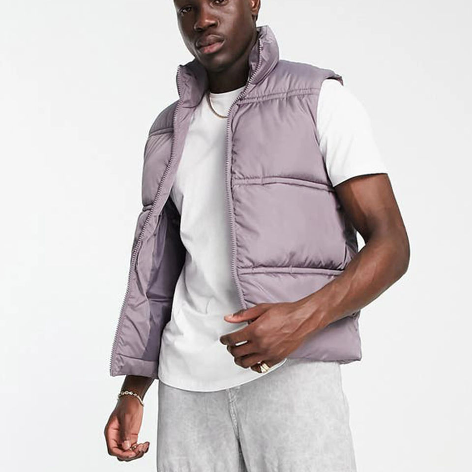 Veste matelassée en toile à col montant décontractée sans manches de haute qualité unisexe d'automne et d'hiver pour hommes avec logo à l'avant personnalisé
