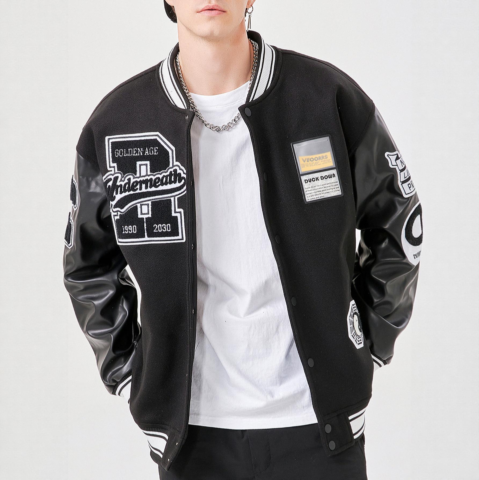 Service OEM personnalisé, veste varsity unisexe en coton avec logo sur le devant, tissu tricoté de qualité supérieure 360g, col en V, logo brodé