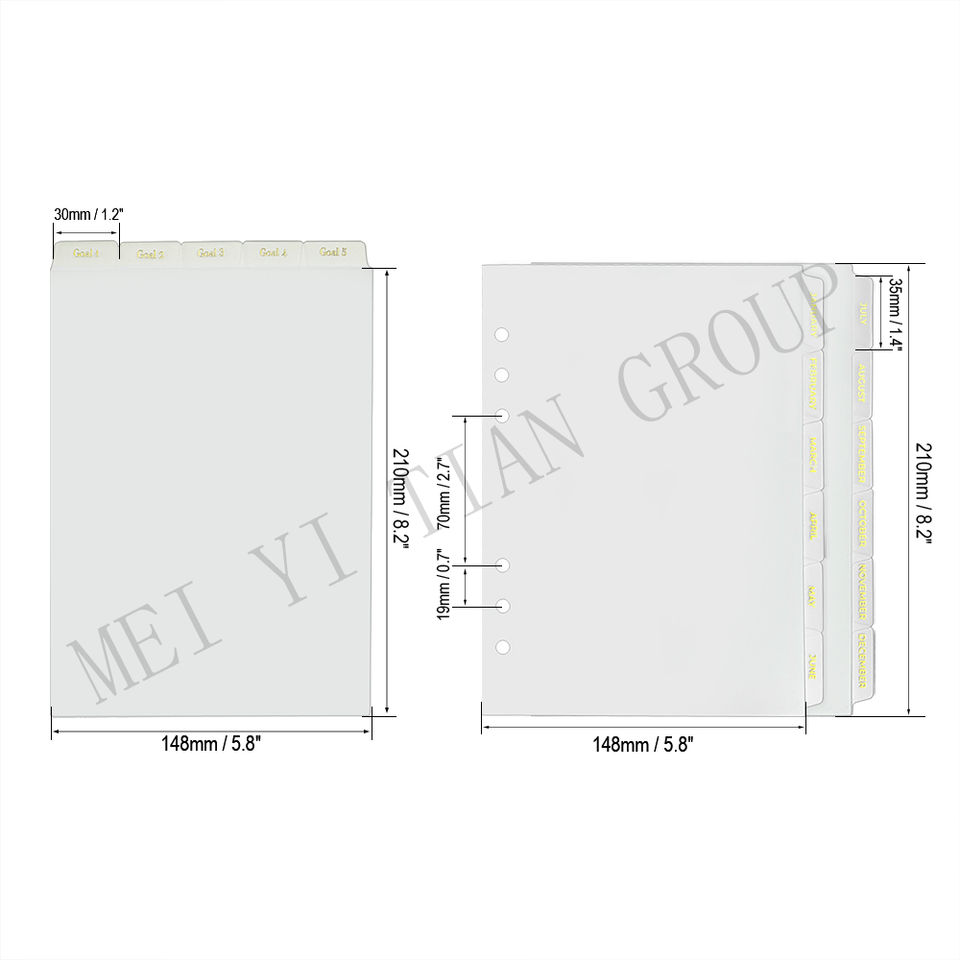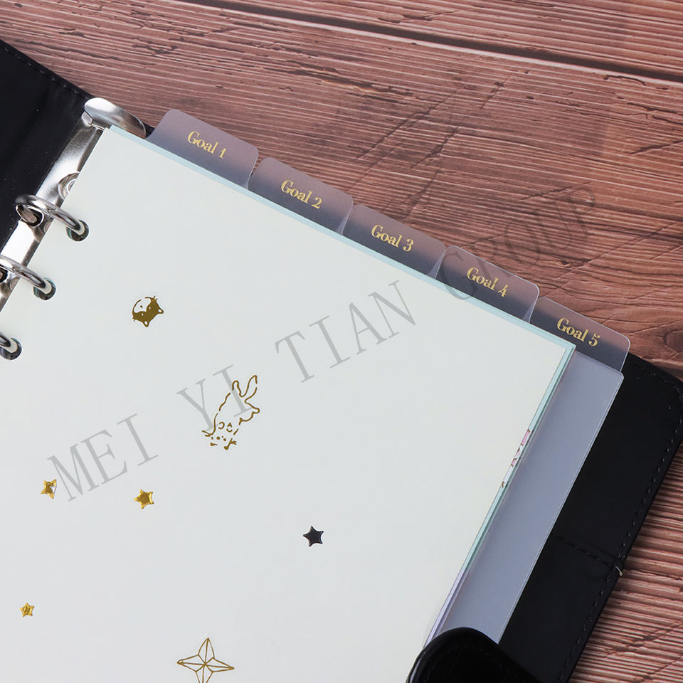 Plaques de séparation 3d en PP 6-Tab, solides et personnalisés, bricolage de trous pour feuilles, lieur, planificateur, organisateur de Filofax, dorure