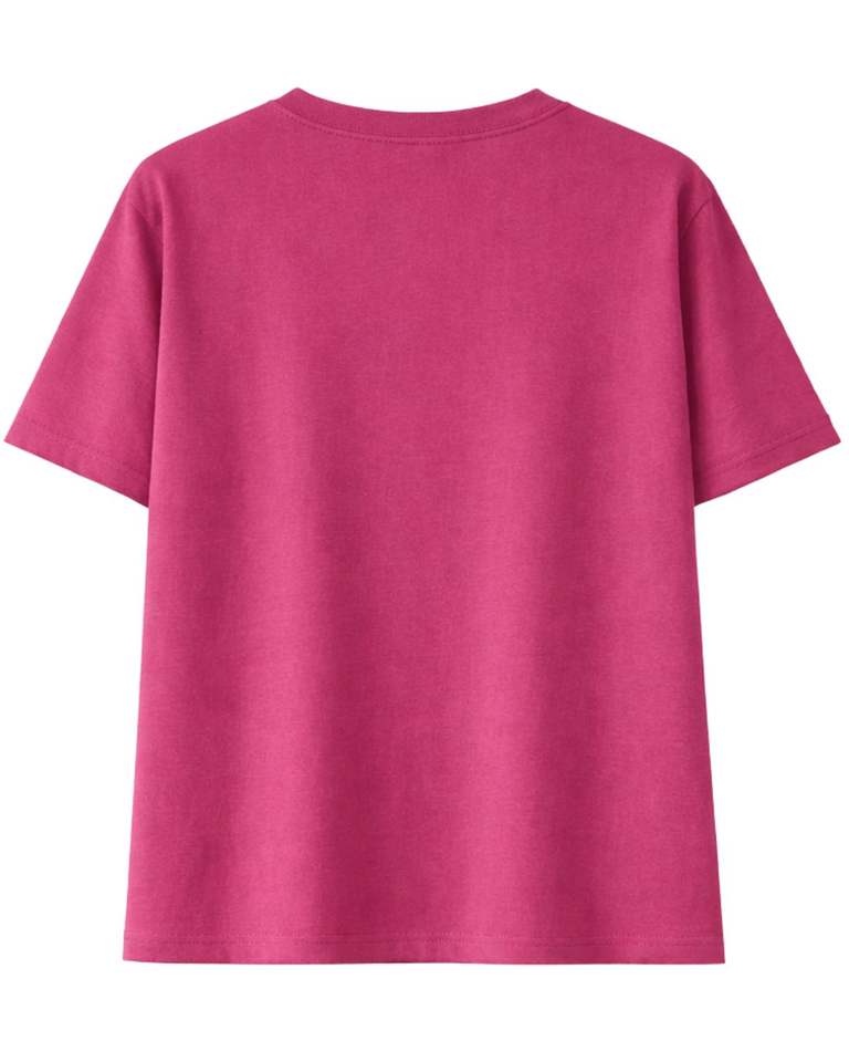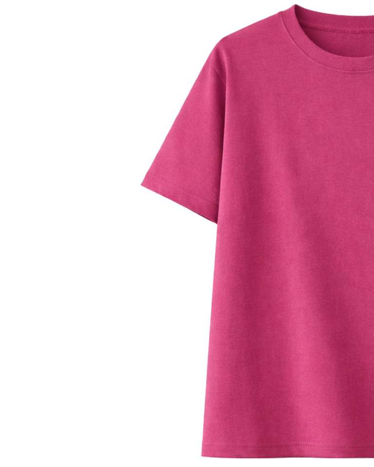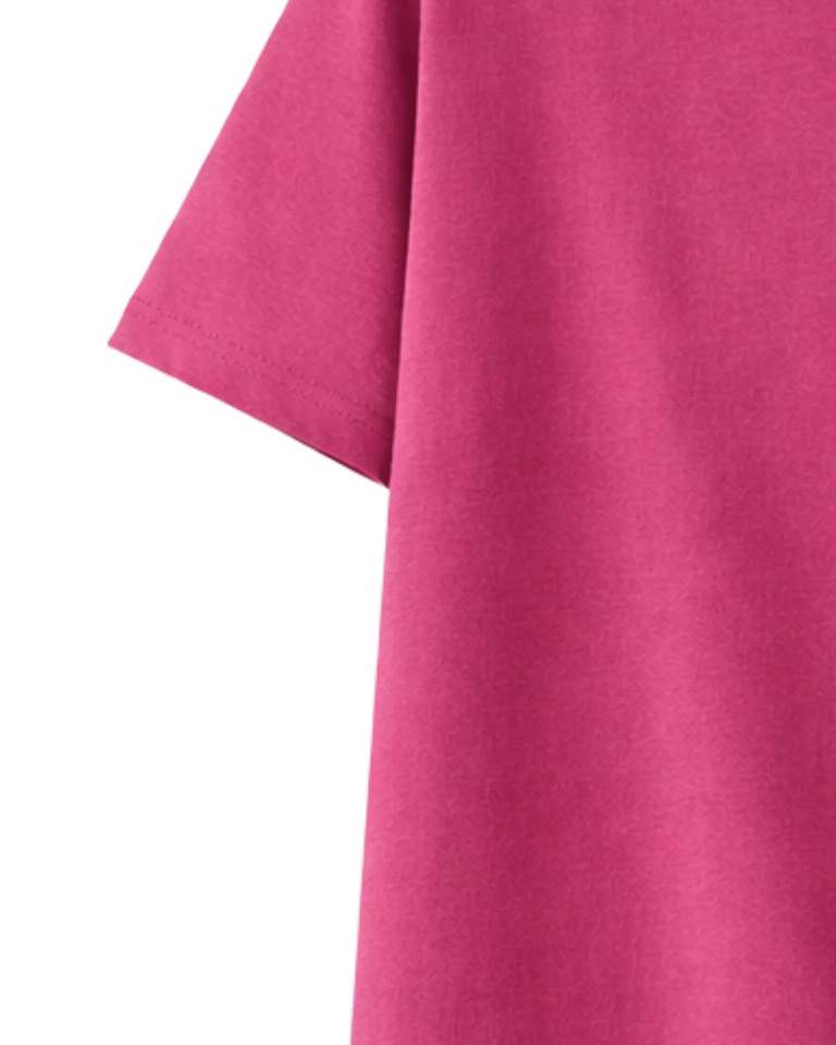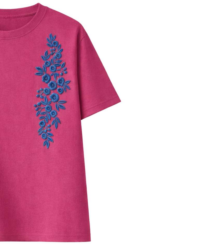 T-shirt personnalisé rose fuchsia pour femme, broderie florale, coton doux, col rond, manches courtes, haut décontracté d'été, tee-shirt léger et tendance