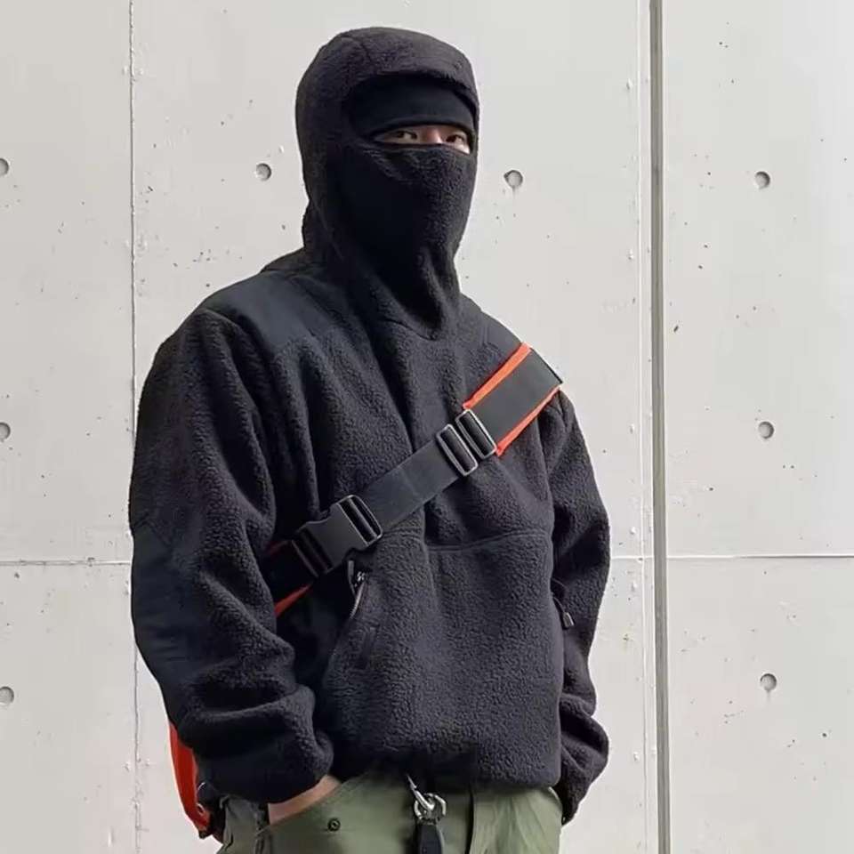 Veste à capuche zippée intégrale personnalisée, pulls d'hiver épais et chauds en polaire, masque à capuche, veste ninja en sherpa pour hommes